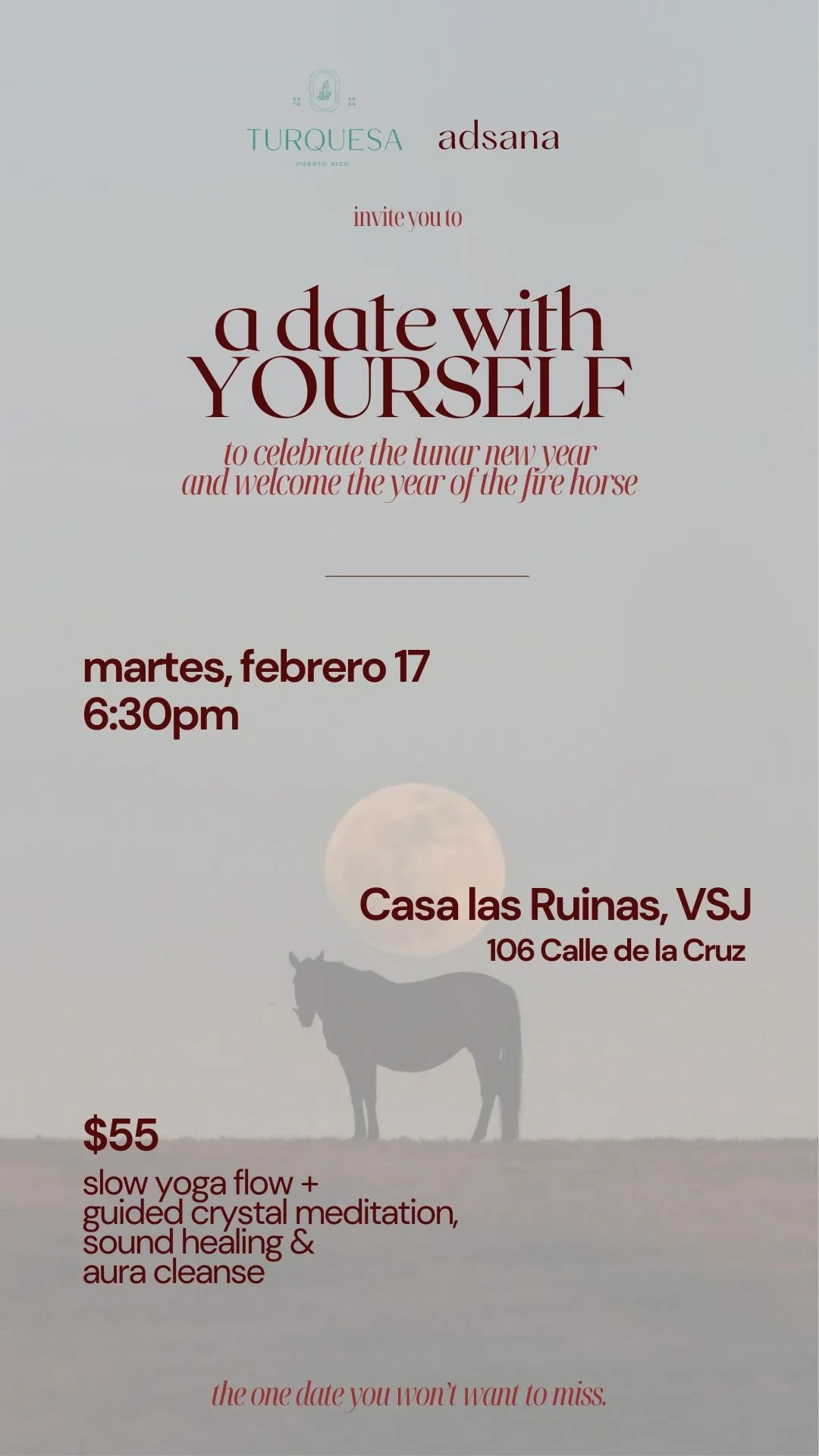 Adsana y Turquesa PR te invitan a un encuentro poderoso para recibir el Lunar New Year y darle la bienvenida oficialmente al año del caballo de fuego 🐎